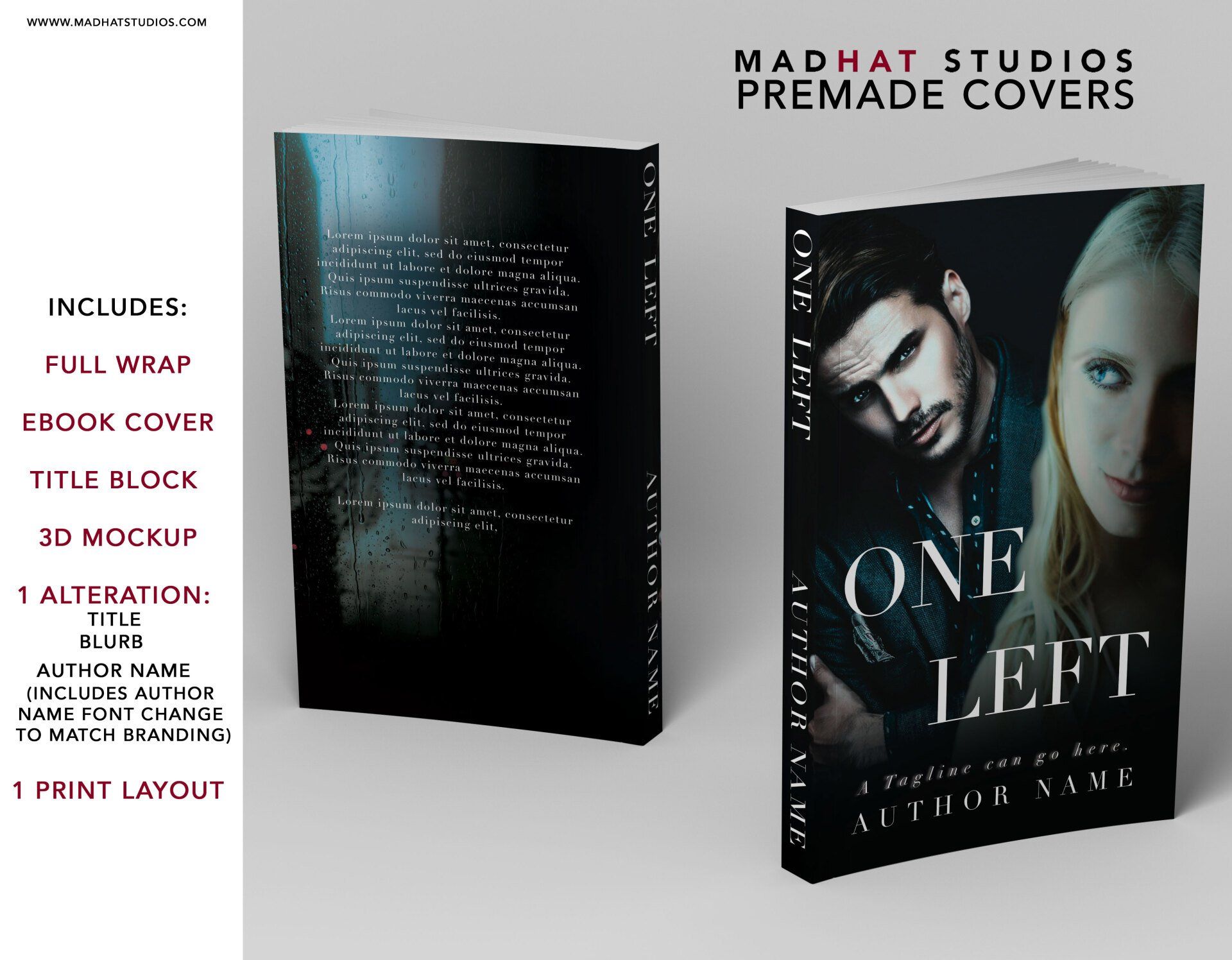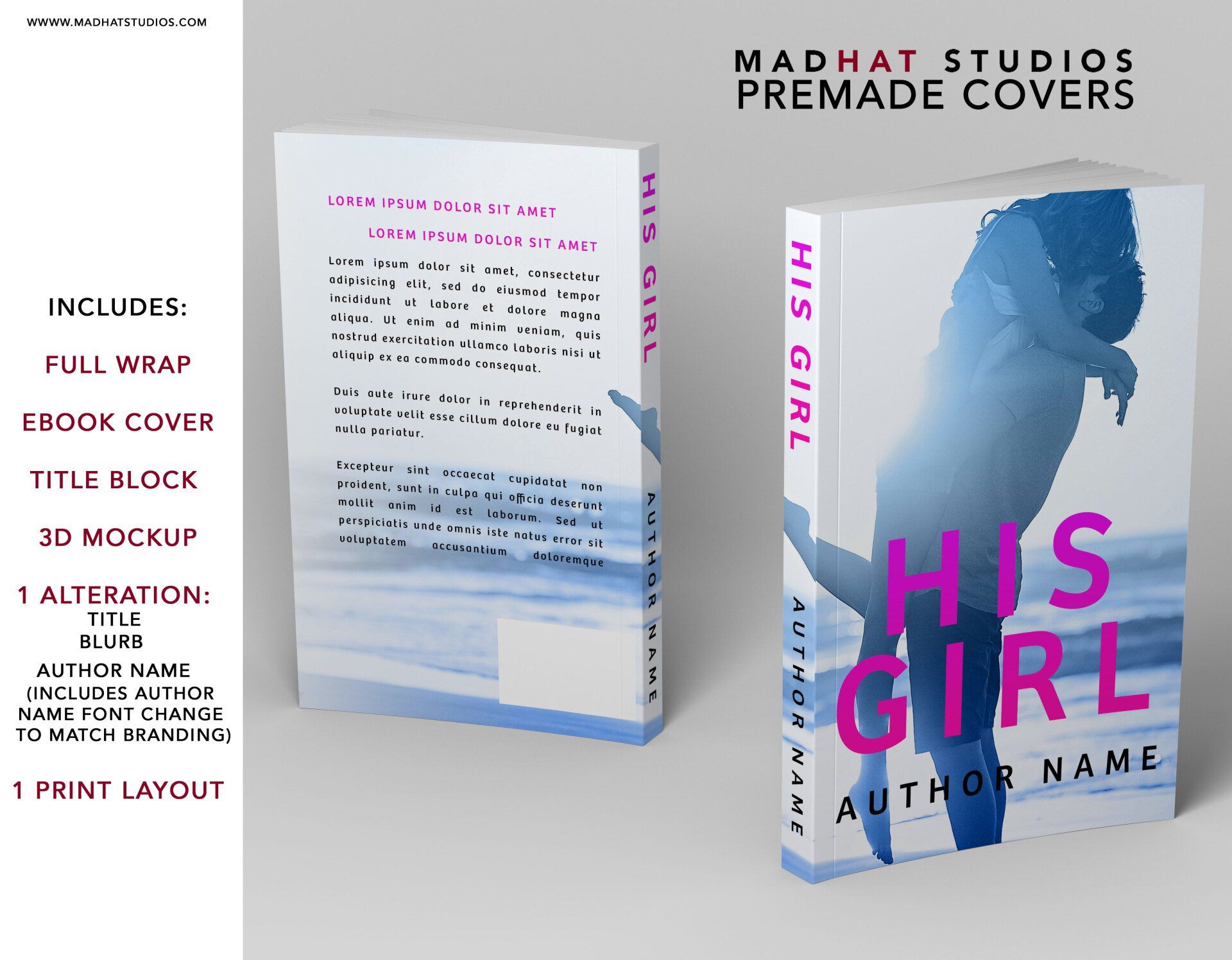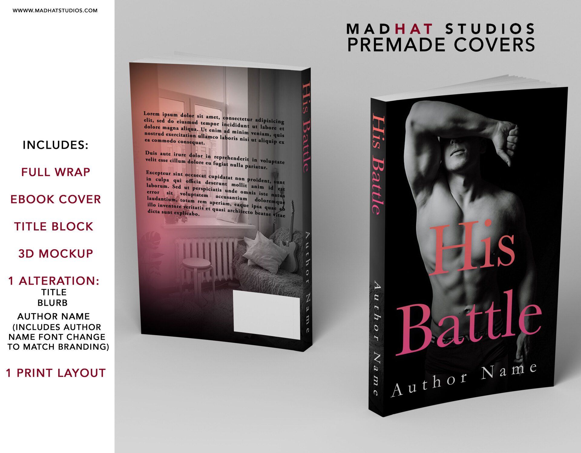 Each cover will be modified with client title, name, back cover copy, and layout to fit final page count.